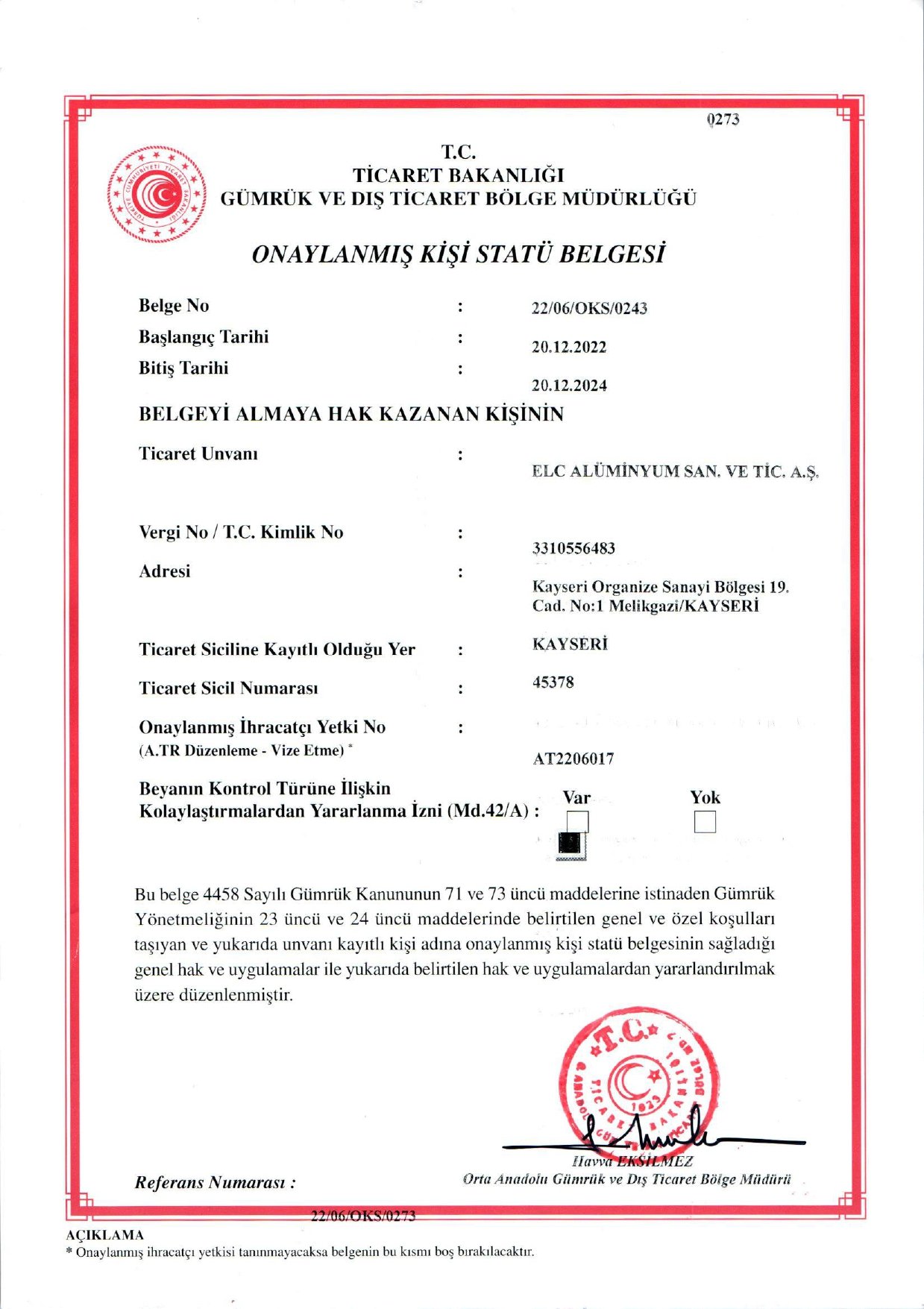 - ELC Alüminyumda kurduğumuz Entegre Yönetim Sistemlerini tüm iş süreçlerinde tüm çalışanlarımızın katılımı ile uygulamayı ve sürekli geliştirmeyi,